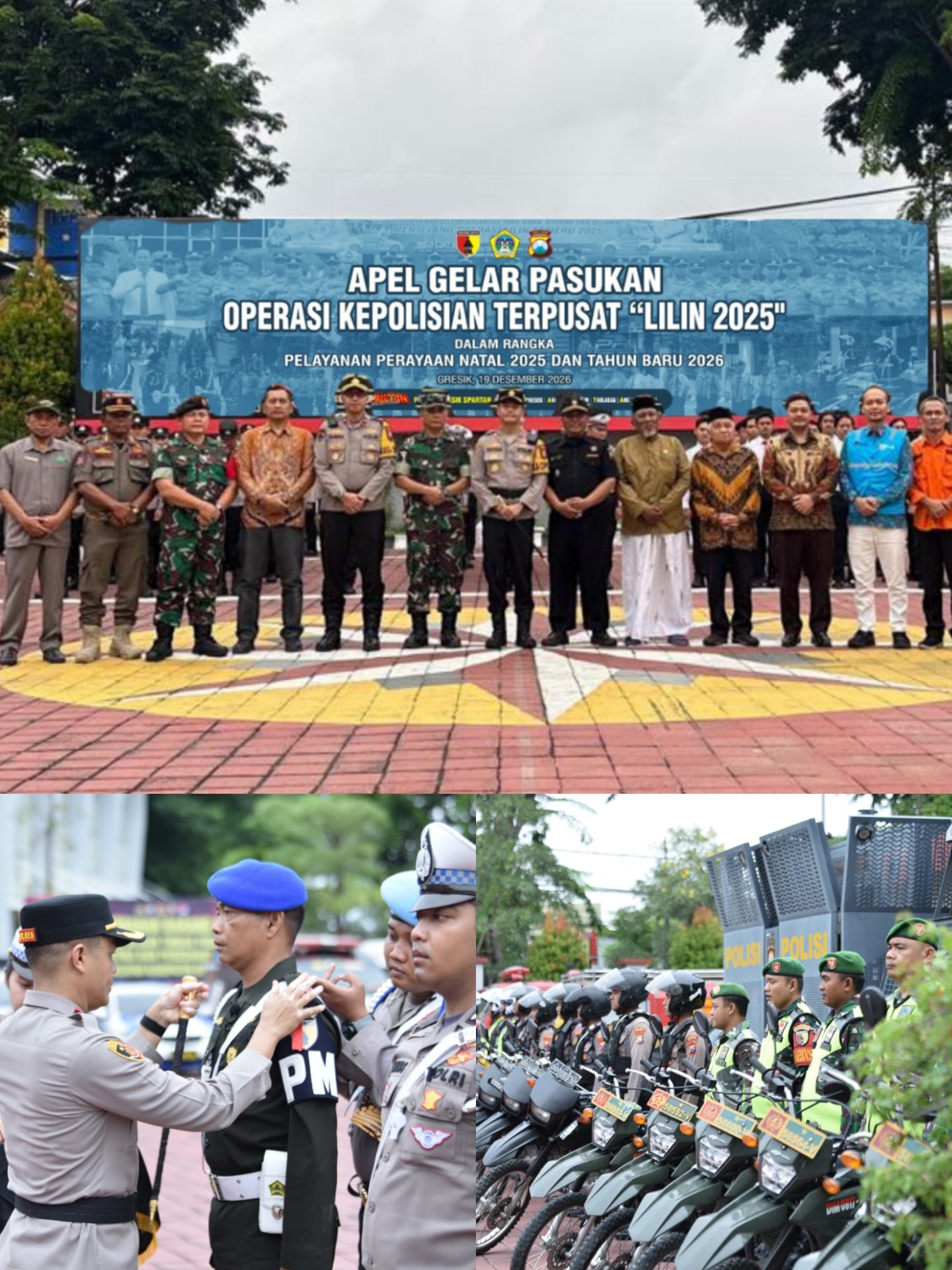 -Polres Gresik menggelar Apel Gelar Pasukan Operasi Kepolisian Terpusat “Lilin 2025” dalam rangka kesiapan pengamanan dan pelayanan perayaan Natal 2025 serta Tahun Baru 2026. Kegiatan tersebut berlangsung di halaman Mapolres Gresik, Jalan Dr. Wahidin Sudirohusodo No. 214, Kecamatan Kebomas, Kabupaten Gresik pada Jumat, 19 Desember 2025.
