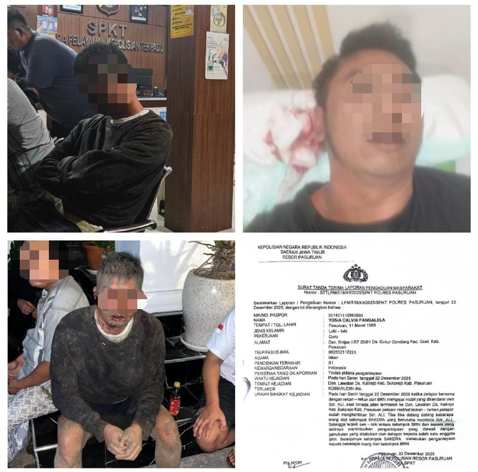 Peristiwa tersebut tercatat dalam Surat Tanda Terima Laporan Pengaduan Masyarakat (STTLPM) Nomor: STTLPM/519/XII/2025/SPKT Polres Pasuruan. Laporan diajukan oleh Yosia Calvin Pangalela (37), seorang guru asal Kecamatan Grati, yang melaporkan dugaan tindakan kekerasan yang dialami dirinya bersama rekan-rekannya dari kelompok BRN.