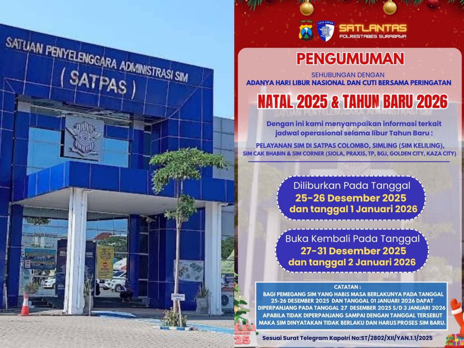 Kanit Regidet Satpas SIM Colombo – Polrestabes Surabaya yakni AKP Tri Arda Meidiansyah, S.TR.K, Sik, melalui Kasubnit Ipda Hariyo Indarto dan didampingi Ipda Dani mengatakan, Rabo (24/12/2025), tanggal-tanggal libur nasional dan cuti bersama sebenarnya telah diatur melalui Surat Keputusan Bersama Menteri Agama, Menteri Ketenagakerjan, dan Menteri Pendayagunaan Aparatur Negara (SKB 3 Menteri).