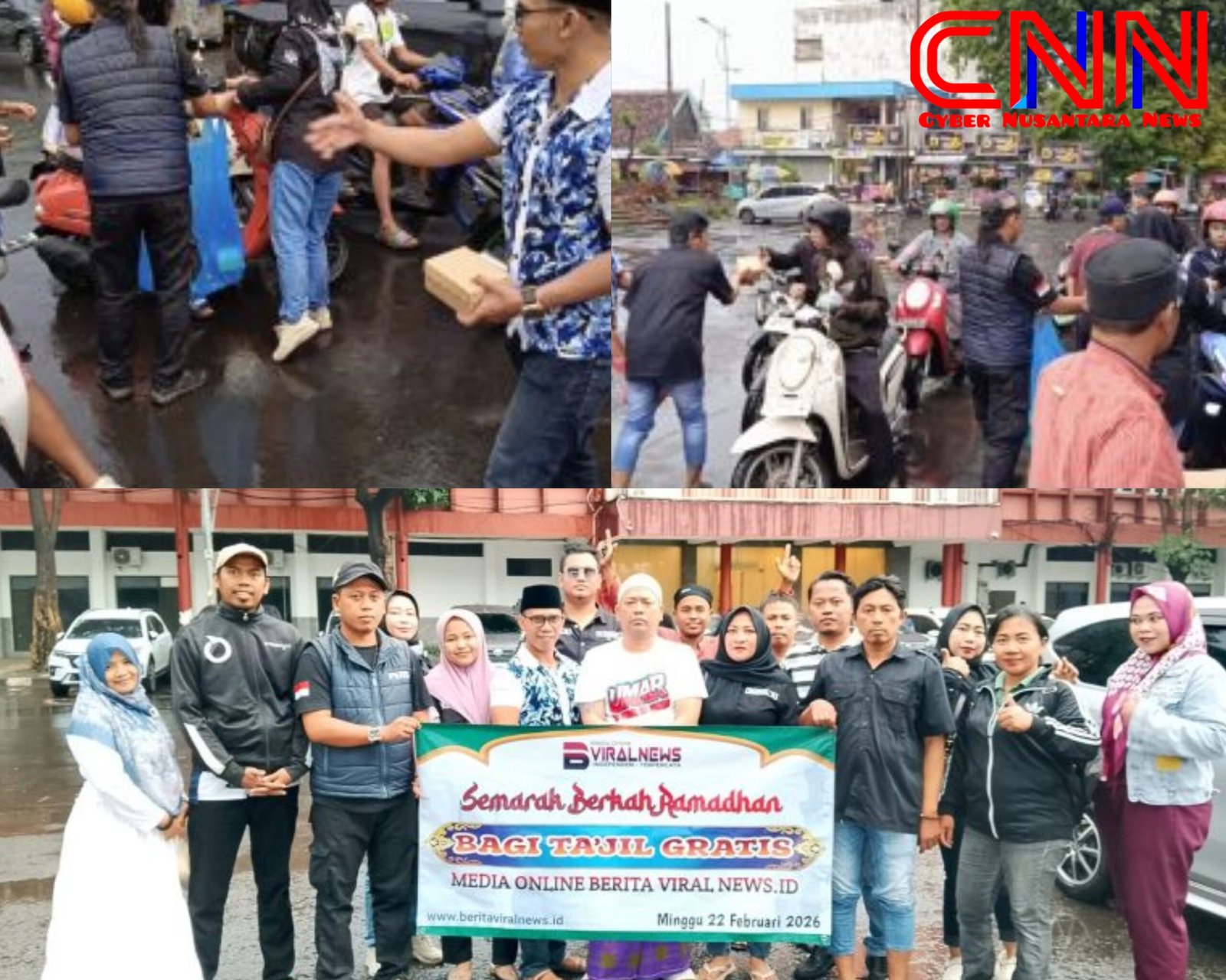 Saya menyampaikan terima kasih kepada rekan-rekan semua. Semangatnya luar biasa, tetap mengutamakan keselamatan meskipun dalam kondisi hujan. Kegiatan bagi-bagi takjil hari ini, 22 Februari 2026, di hari ke-empat Ramadan, semoga menjadi tambahan amal bagi seluruh anggota yang hadir dan Menabur kebahagian bagi orang lain,” ungkapnya.