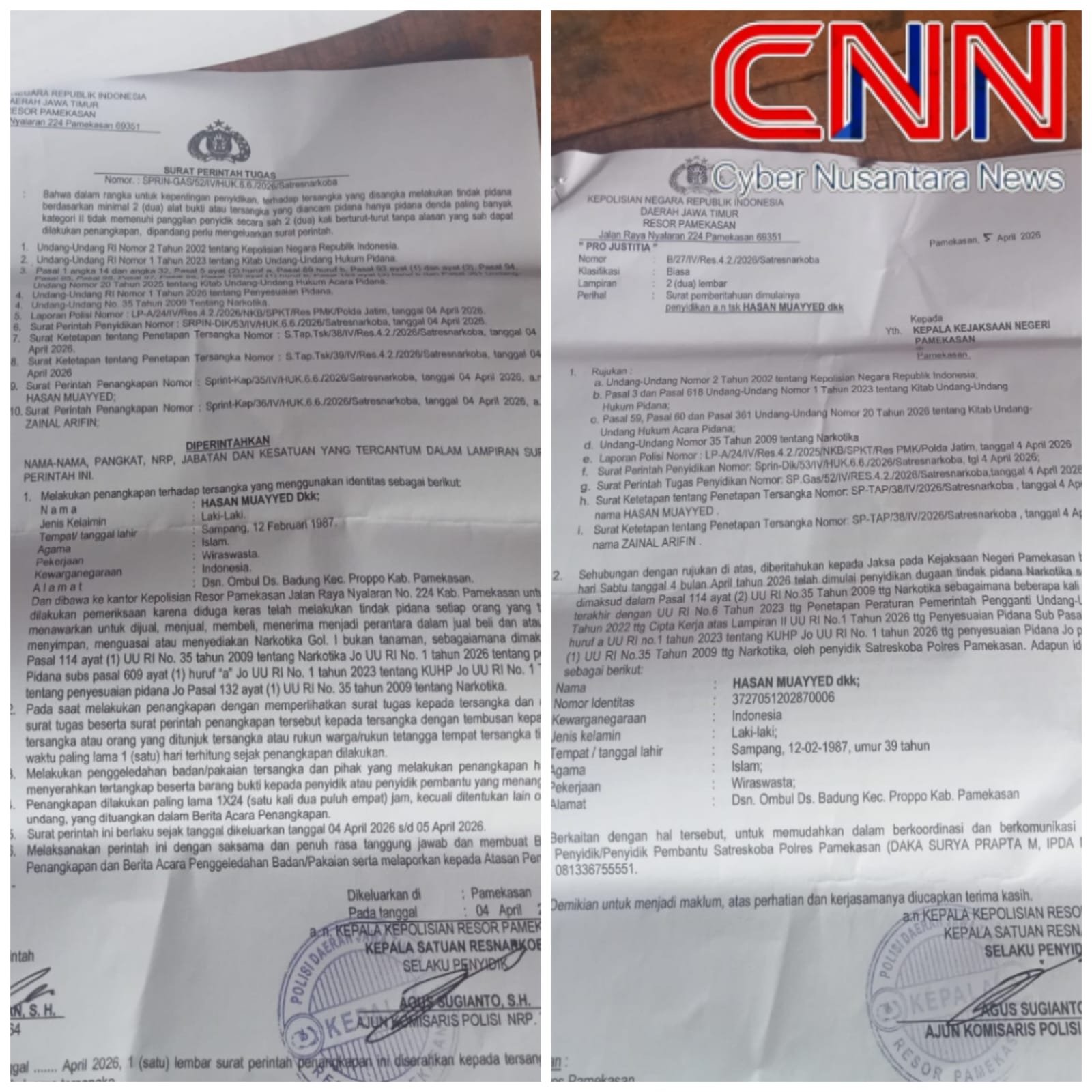 Namun, tiba – tiba, pada hari Sabtu (11/04/2026) pihak penyidik Satresnarkoba Polres Pamekasan meminta kembali Surat Penangkapan dan Surat Penahanan serta SPDP terhadap Hasan Muhayyed dengan alibi diperbarui dan akan memberikan Surat Penangkapan serta Surat Penanahanan terhadap Zainal Arifin.