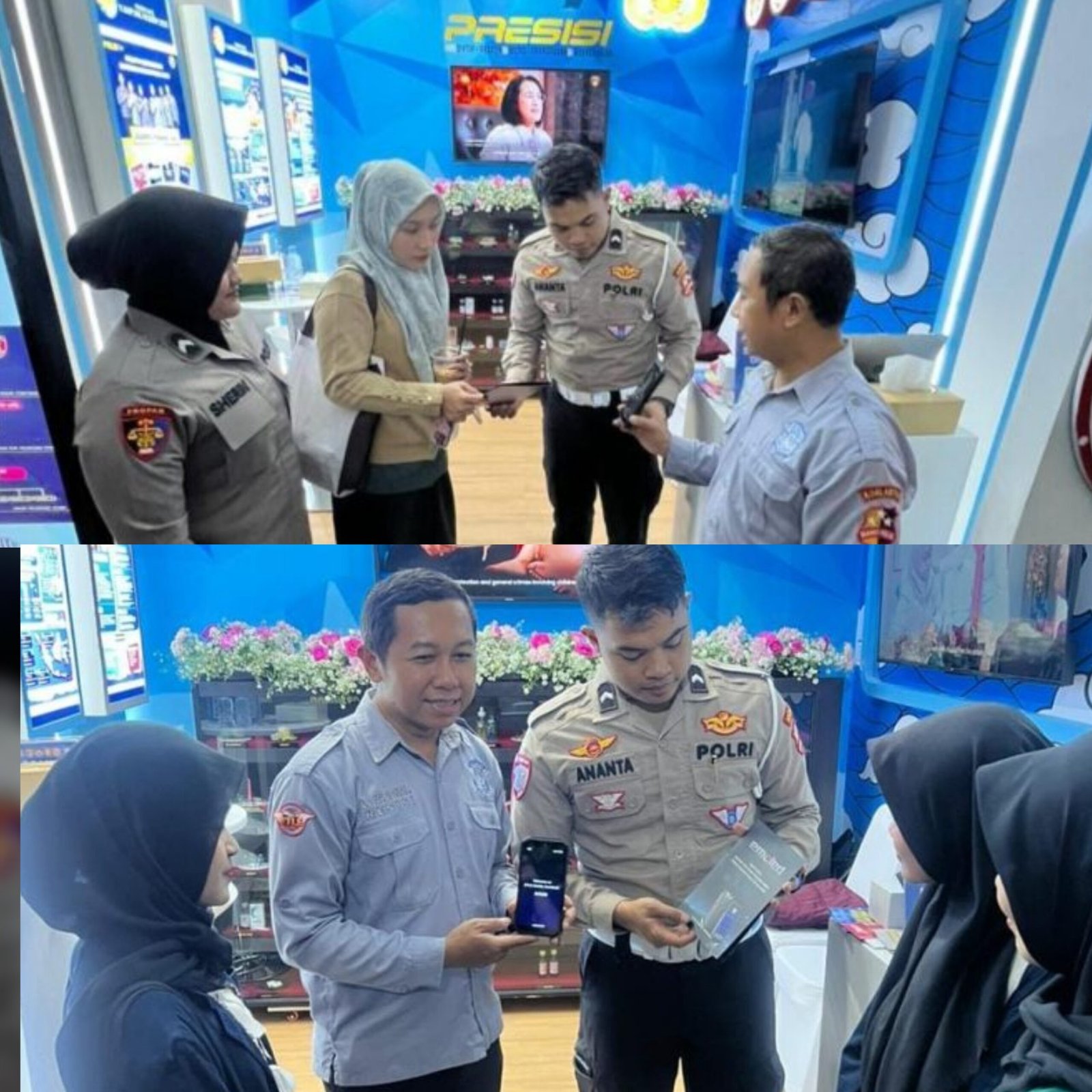 Selain itu, ditampilkan pula video dan brosur sebagai sarana edukasi publik terkait penegakan hukum lalu lintas berbasis digital.