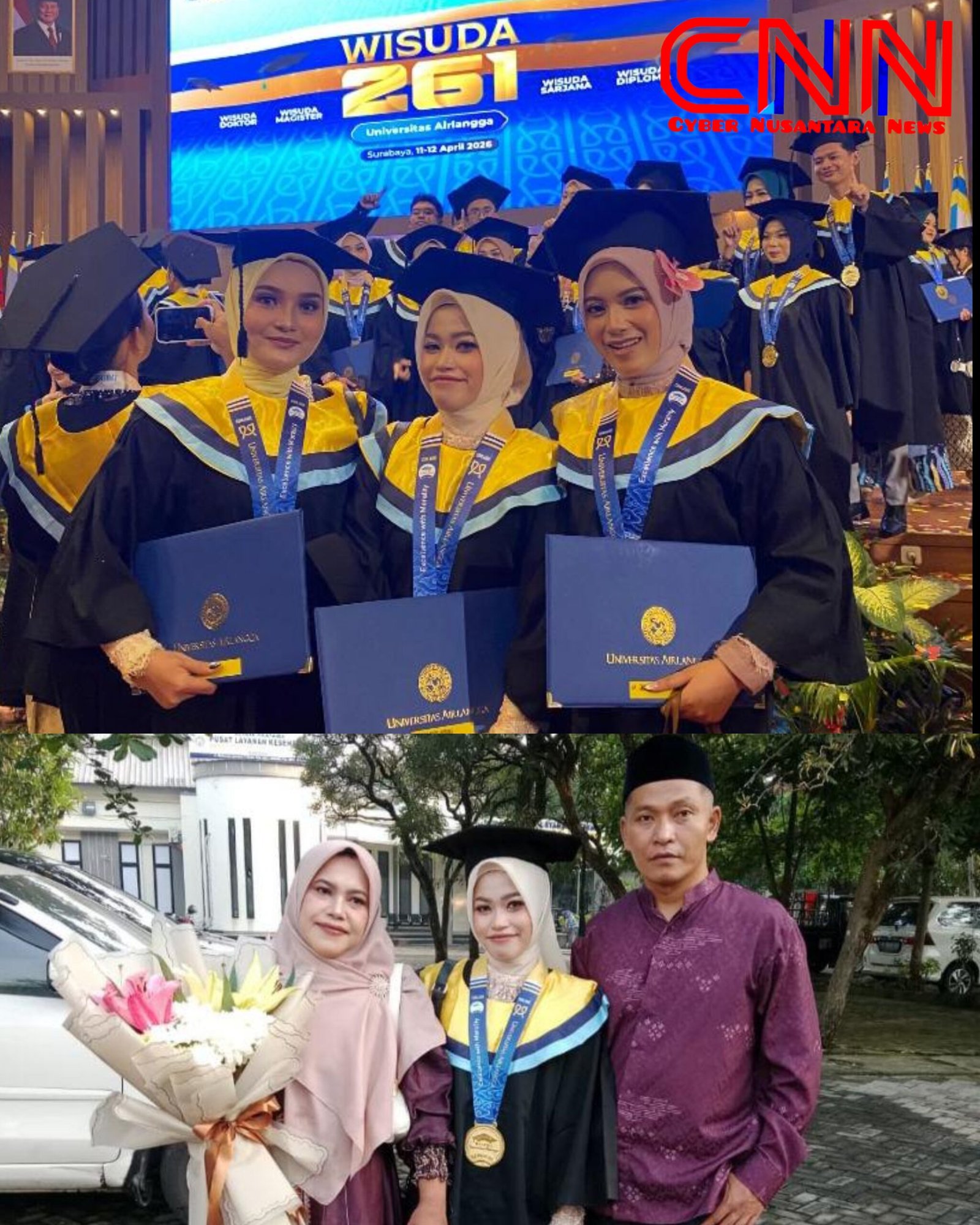 SURABAYA, CyberNusantaraNews –Suasana haru dan penuh kebanggaan menyelimuti prosesi wisuda yang digelar pada Minggu, 12 April 2026, di Universitas Airlangga. Salah satu wisudawan yang turut merasakan momen istimewa tersebut adalah Nadia Putri Salsabila dari Jurusan Keperawatan, Fakultas Keperawatan.