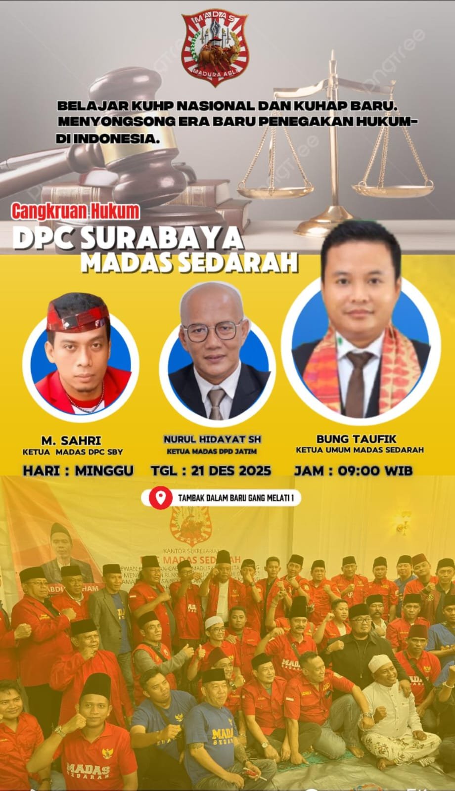 Dengan menyelenggarakan kegiatan Cangkruan Dasar Hukum bertema “ Belajar KUHP Baru dan KUHAP Nasional, Tantangan dalam Penegakan Hukum yang Berkeadilan” yang akan digelar pada Minggu, 21 November 2025, Pukul 09:00 Wib bertempat di Tambak Dalam Baru Gang Melati 1 Kota Surabaya.