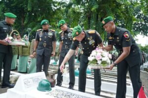 —Peringatan Hari Juang TNI AD dan HUT ke-77 Kodam V/Brawijaya tahun 2025 berlangsung khidmat melalui ziarah rombongan di TMP 10 Nopember Surabaya yang dipimpin Pangdam V/Brawijaya Mayjen TNI Rudy Saladin. M.A. “Ziarah ini wujud penghormatan kepada para pahlawan,” tegas Pangdam V/Brawijaya dalam kegiatan tersebut.