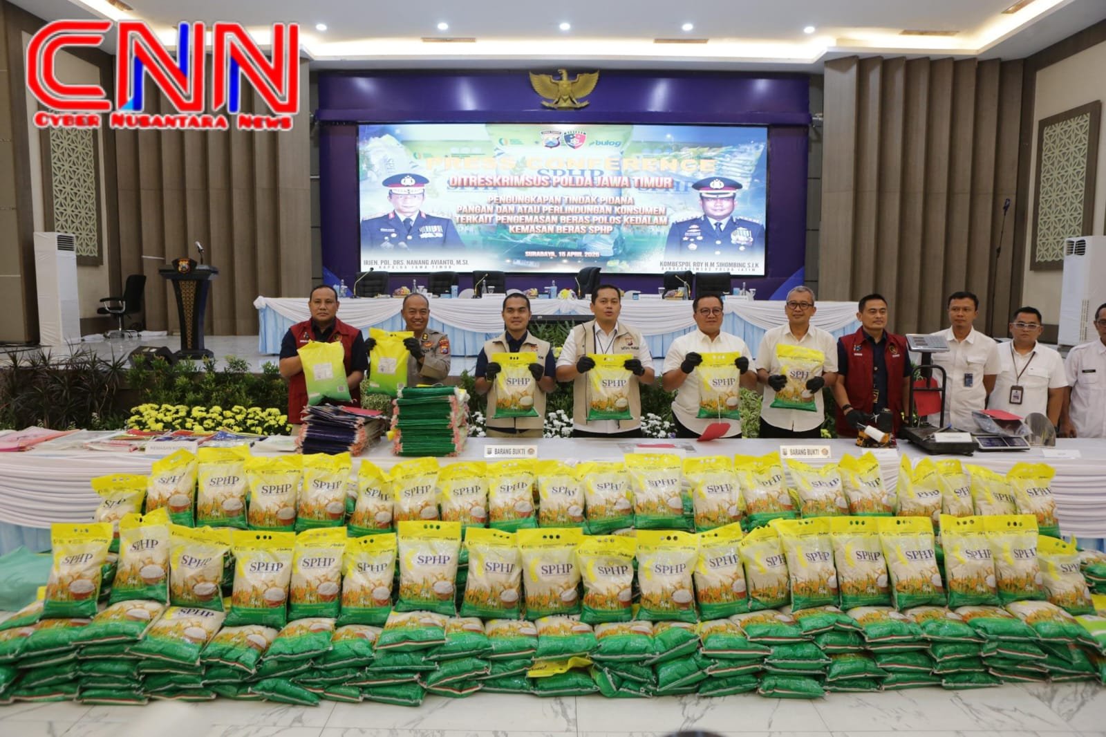 SURABAYA, CyberNusantaraNews -Direktorat Reserse Kriminal Khusus (Ditreskrimsus) Polda Jawa Timur mengungkap kasus dugaan tindak pidana di bidang pangan dan perlindungan konsumen terkait peredaran beras kemasan program Stabilisasi Pasokan dan Harga Pangan (SPHP) yang tidak sesuai ketentuan.