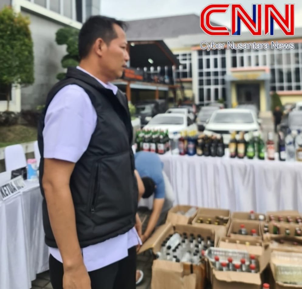 Gresik,- CyberNusantaraNews, Polres Gresik kembali menegaskan komitmennya dalam menjaga keamanan dan ketertiban masyarakat dengan memberantas peredaran minuman keras (miras) ilegal. Dalam konferensi pers yang digelar pada Kamis (12/3/2026) sore, Kapolres Gresik AKBP Ramadhan Nasution, S.I.K., M.H., M.Si., memimpin langsung pemusnahan ratusan botol miras hasil tangkapan Operasi Pekat Semeru 2026.