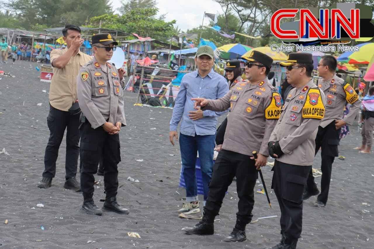 Lumajang,-CyberNusantara News,Untuk memastikan keamanan dan kenyamanan masyarakat selama libur Hari Raya Idul Fitri 1447 Hijriah, Kapolres Lumajang AKBP Alex Sandy Siregar turun langsung meninjau sejumlah objek wisata pantai di wilayah Kabupaten Lumajang.