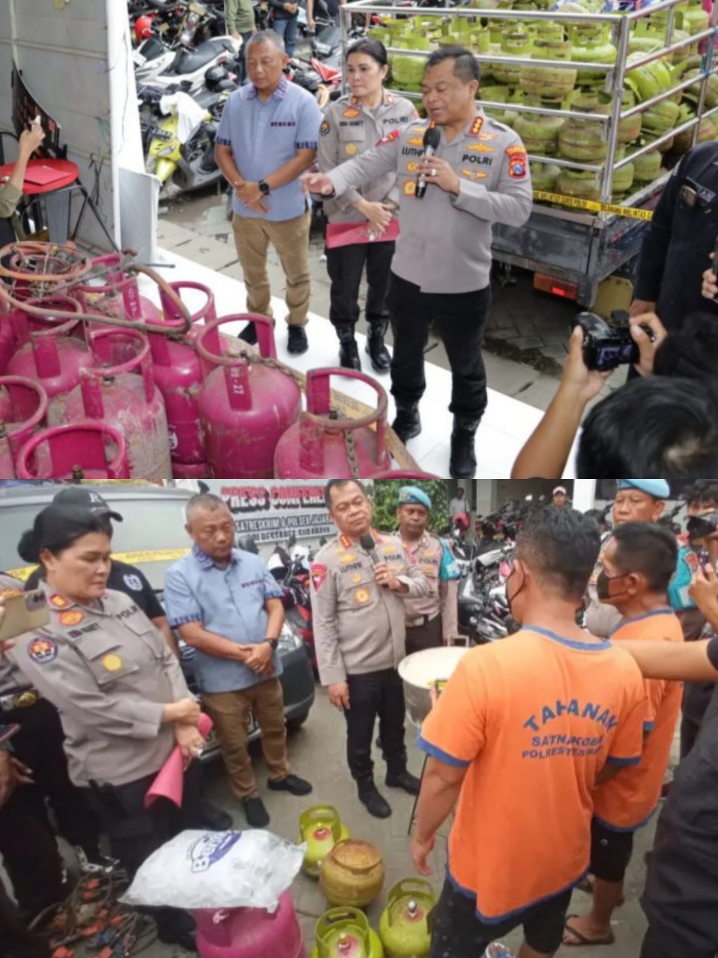 Setiap tabung 12 kg pink diisi dengan setara empat tabung LPG 3 kg subsidi. Rata-rata pengiriman mencapai lebih dari 100 tabung per hari, dengan keuntungan bersih sekitar Rp20.000 per tabung, sehingga total pendapatan harian mencapai Rp2.000.000,” jelas Kapolrestabes.