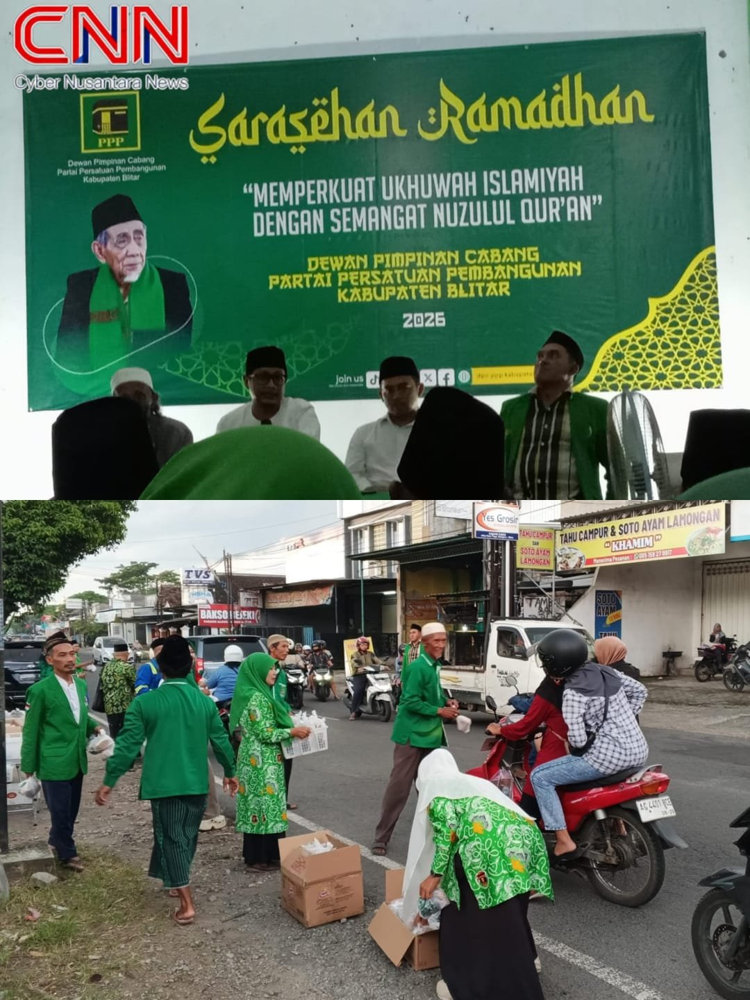 Blitar,–CyberNusantaraNews, Dewan Pimpinan Cabang Partai Persatuan Pembangunan (DPC PPP) Kabupaten Blitar menggelar kegiatan Sarasehan Ramadhan sebagai momentum mempererat silaturahmi dan memperkuat ukhuwah Islamiyah di tengah masyarakat. Kegiatan tersebut berlangsung di wilayah Kabupaten Blitar dan dihadiri oleh pengurus partai, tokoh agama, serta masyarakat.