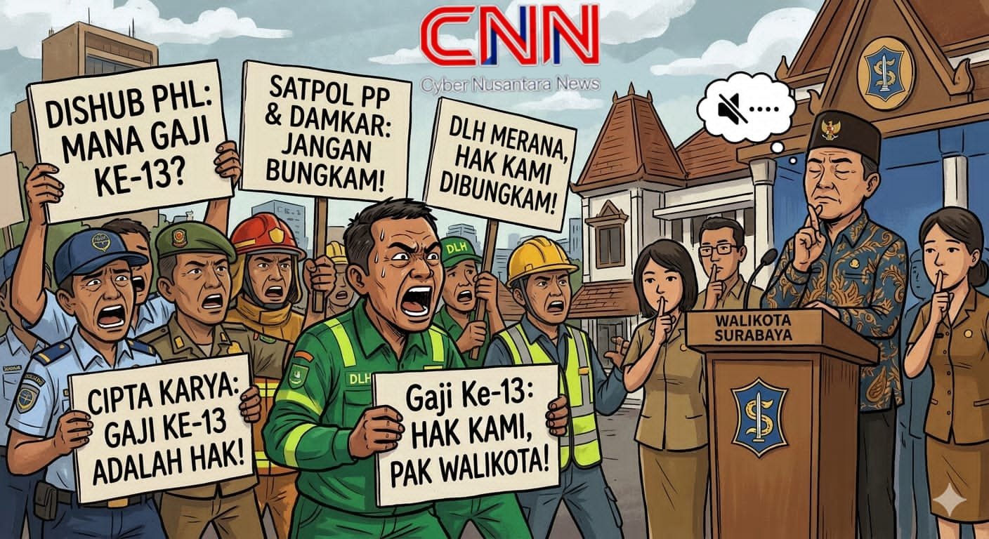 -Pemerintah Kota Surabaya (Pemkot) kini menghadapi sorotan serta tidak adanya regulasi kejelasan terkait belum terpenuhinya gaji ke 13 yang di sematkan dengan pengganti Tunjangan Hari Raya (THR) terhadap tenaga kontrak / Pegawai Harian Lepas (PHL) di lingkungan Pemkot, Senin (16/03/2026).