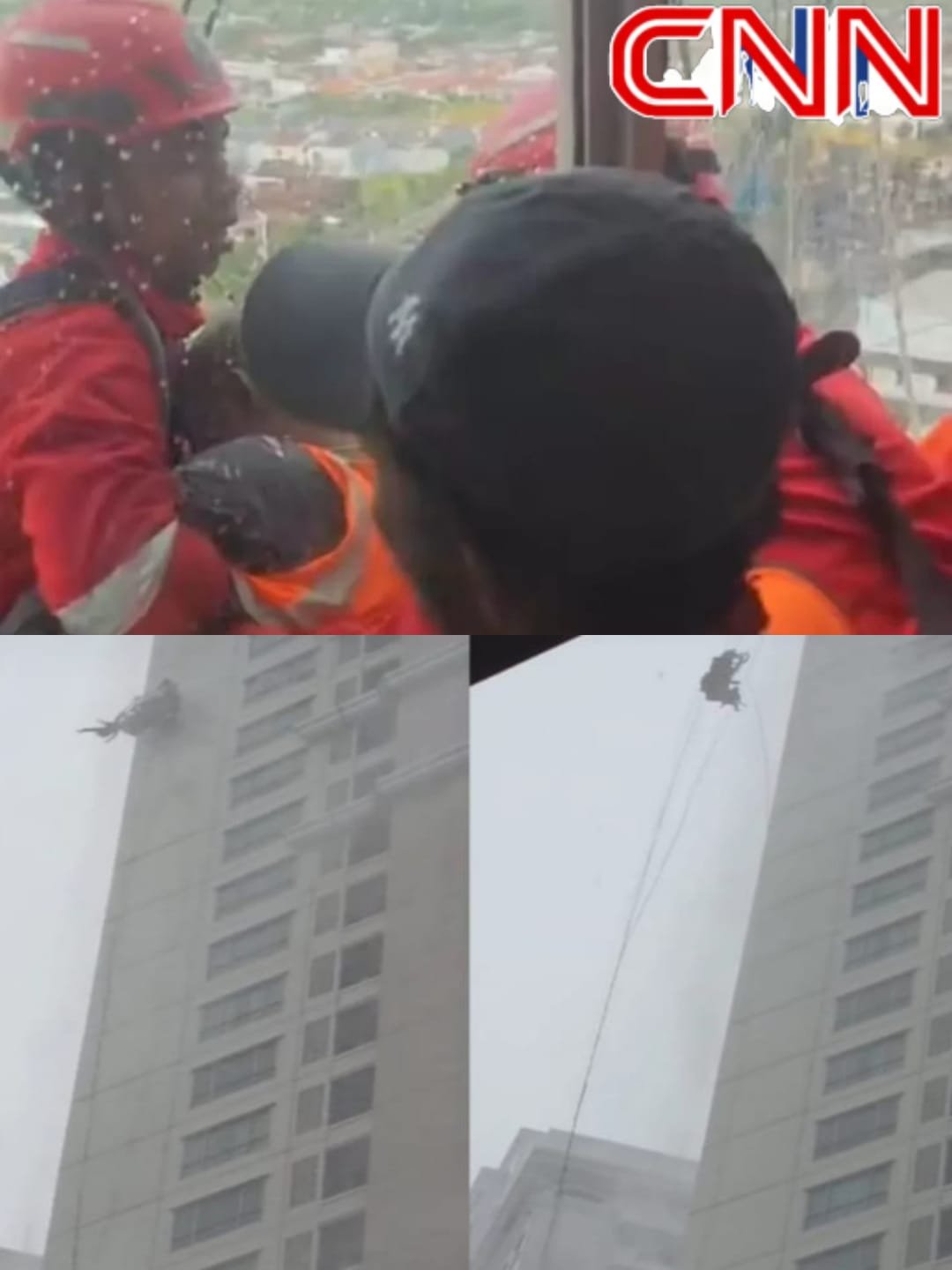 Peristiwa ini terekam dalam video berdurasi 23 detik yang viral di media sosial. Dalam rekaman tersebut, terlihat tubuh pria itu terombang-ambing hebat akibat terjangan angin yang disertai hujan di ketinggian. Beberapa kali tubuh korban tampak terhempas ke dinding gedung bertingkat tersebut, menambah dramatis situasi. “Ada orang itu. Waduh-waduh,” ujar perekam video dengan nada cemas.