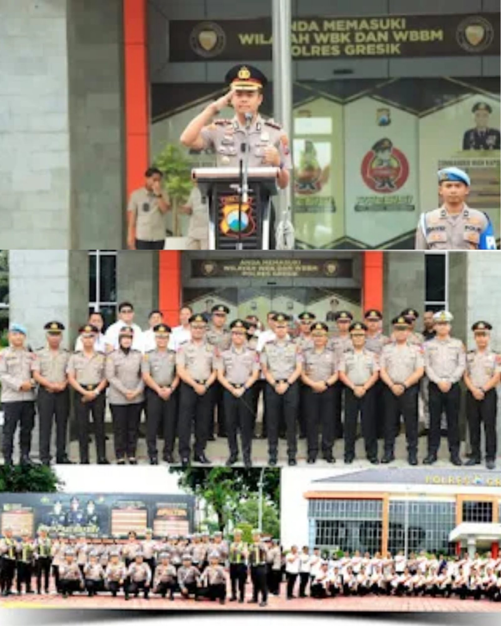-Suasana penuh haru menyelimuti halaman Mapolres Gresik saat Apel Pagi Pimpinan, Senin (5/1/2026). Apel tersebut menjadi momen istimewa lantaran Kapolres Gresik, AKBP Rovan Richard Mahenu, menyampaikan arahan yang juga menjadi pamitan terakhirnya kepada seluruh jajaran.