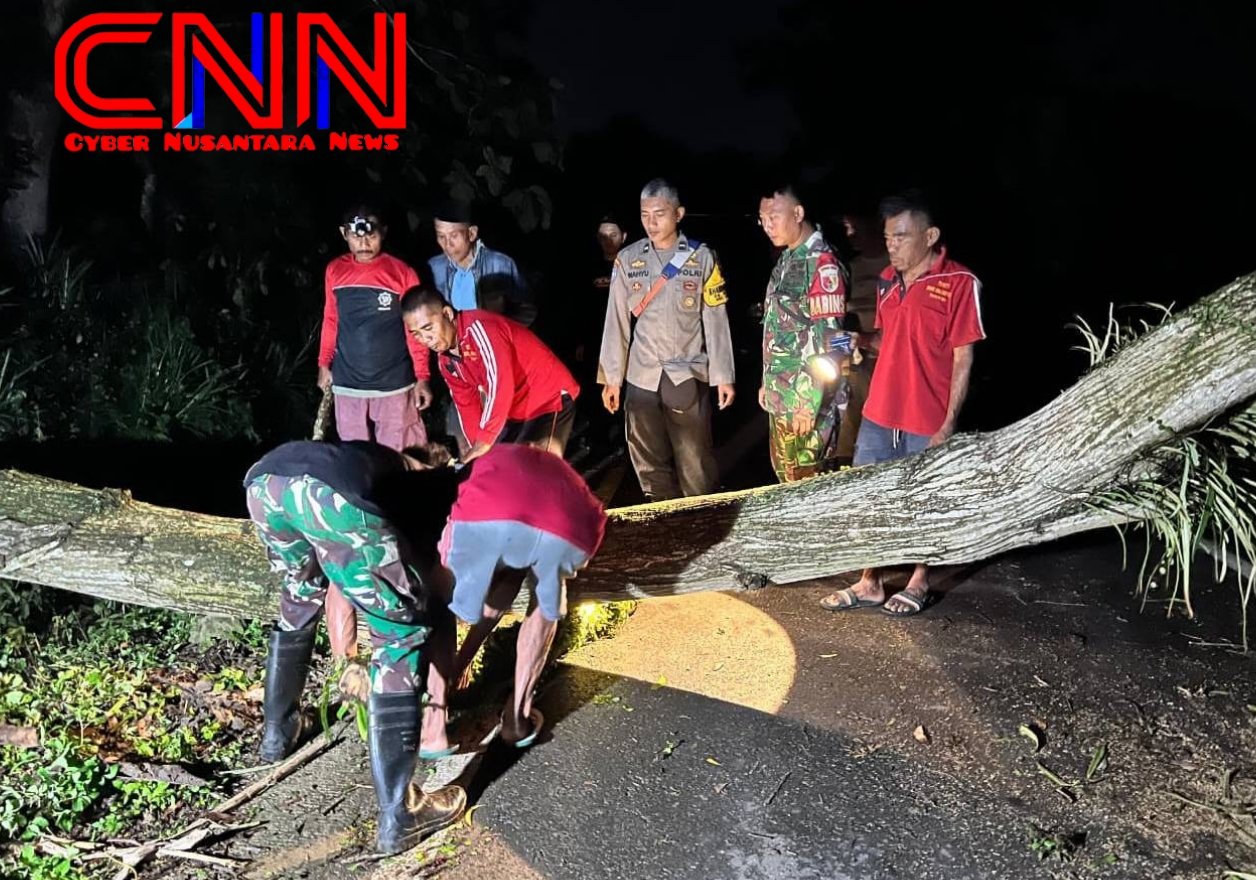 TNI-Polri Sigap Evakuasi Pohon Tumbang Akibat Cuaca Ekstrem di Trenggalek
